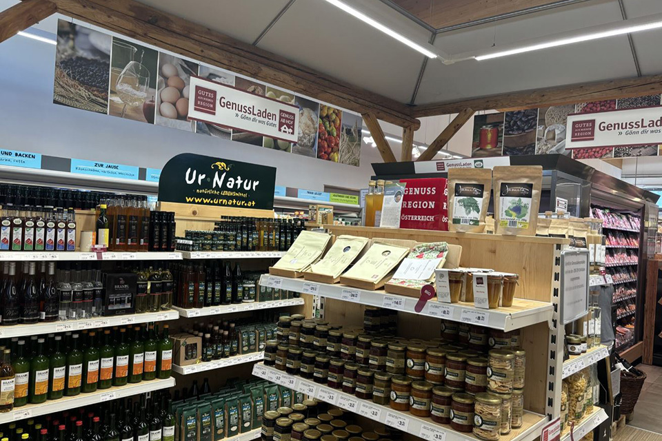 "Wir hatten schon im Vorfeld gute Erfahrungen mit dem Genussladen und wollten ihn in unseren Markt integrieren. Das wird sehr gut angenommen und passt natürlich perfekt in unser Portfolio", sagt Hölzl. Spartenleiter Siegfried Gruber sieht eine Win-win-Situation: "Wir haben sehr viele Kunden, dadurch stehen unsere regionalen Lieferanten noch mehr in der Auslage."