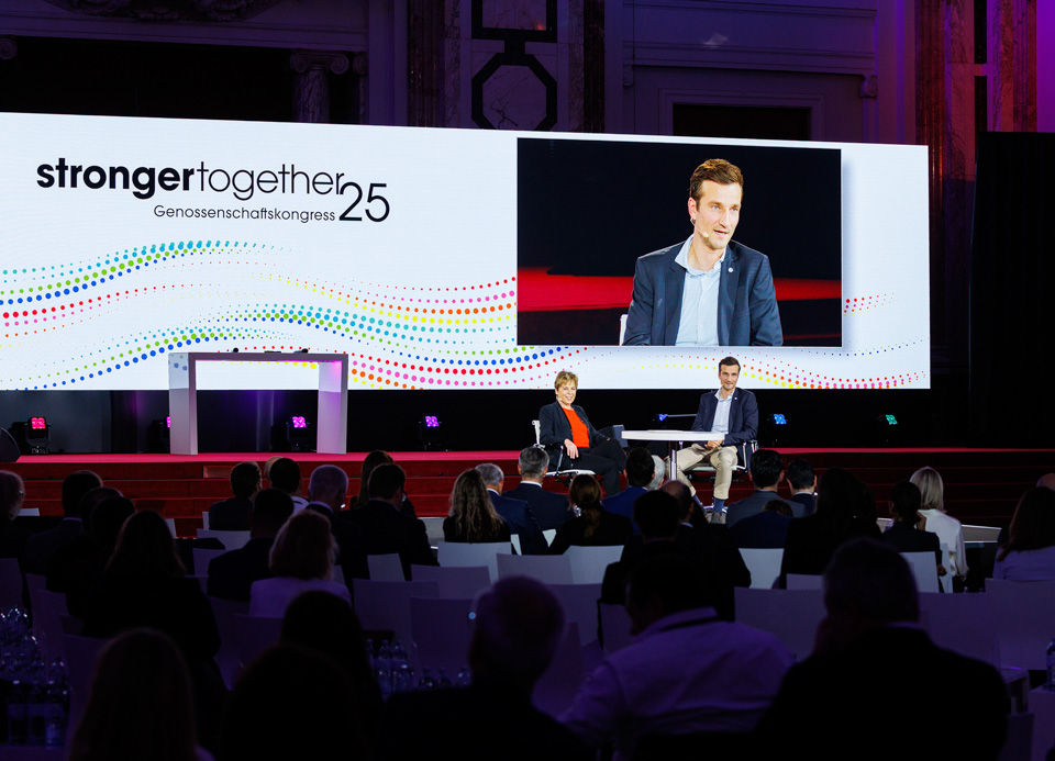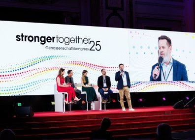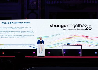Das vielfältige Programm der von Kristina Inhof moderierten Veranstaltung bot den Teilnehmerinnen und Teilnehmern zahlreiche Impulse aus der Welt der Genossenschaften. So erklärte ÖFB-Teamchef Ralf Rangnick, wie man Kooperation erfolgreich auf den Platz bringt, der Arbeitswissenschaftler und Professor an der New Yorker „New School“, Trebor Scholz, brach eine Lanze für digitalen „Platform Cooperativism“ und APA-Chef Clemens Pig hob die Bedeutung unabhängiger genossenschaftlicher Nachrichtenagenturen für die freien Medien hervor.