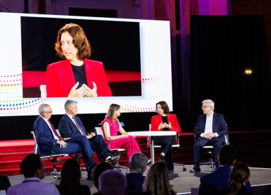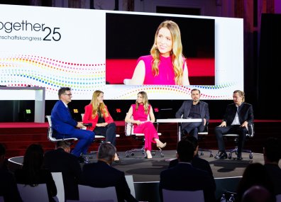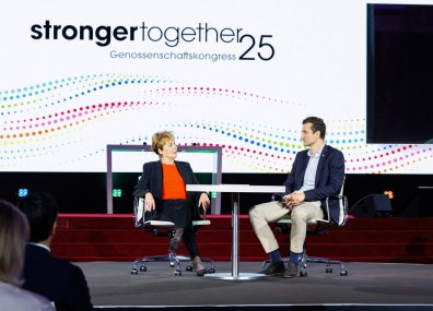 Um Genossenschaftsbanken als Zukunftsmodell ging es in einer hochkarätigen Talkrunde mit Vertretern der beiden genossenschaftlichen Bankensektoren, Raiffeisen und Volksbanken. Viel Raum auf dem Podium bekamen auch innovative junge Genossenschaften aus Österreich und dem Ausland. Für ein Aha-Erlebnis sorgte dabei der deutsche Kult-Fußballklub Schalke 04, der neuerdings auf genossenschaftlichen Erfolg setzt. Im Gespräch mit der Genossenschaftsforscherin Theresia Theurl erläuterte der CEO des FC Schalke 04, Matthias Tillmann, die Beweggründe für die Gründung einer Genossenschaft.