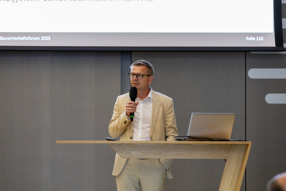 Zum Abschluss gab Jörg Waldauer, Bereichsleiter Immobilienprojektfinanzierungen bei der Raiffeisen-Landesbank Steiermark, Einblicke in die Perspektive der Finanzwelt. Er analysierte die aktuellen Herausforderungen durch steigende Zinsen und strengere Kreditvergaben, zeigte aber auch Chancen auf: Innovative Projekte mit nachhaltigem Fokus würden von Banken zunehmend positiv bewertet. Waldauer betonte, dass sich die klassische Projektfinanzierung im Wandel befinde. Erfolgreiche Modelle basierten heute stärker auf Kooperation, Transparenz und frühzeitiger Risikobewertung. „Dort, wo solide Konzepte und langfristige Strategien vorliegen, sind wir weiterhin starke Partner“, erklärte er.