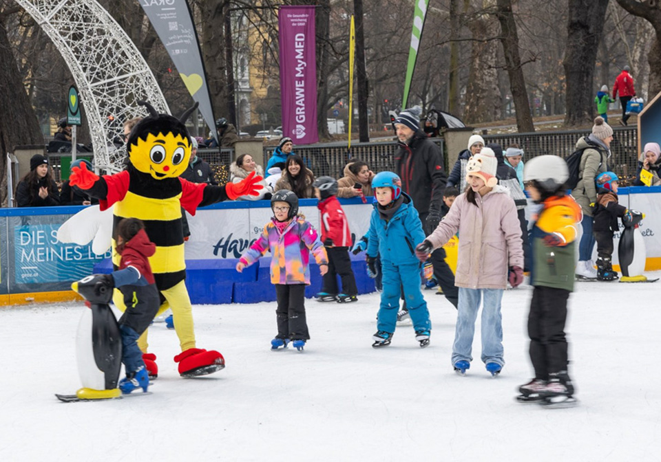Die Winterwelt selbst, ein traditionsreicher Eislaufplatz unter dem Grazer Schlossberg mit rund 3.000 m² Eisfläche, bot auch in dieser Saison wieder ein vielfältiges Freizeitangebot für Groß und Klein – von Schlittschuhlaufen über Eisstockschießen bis hin zu regelmäßigen Veranstaltungen im Winterprogramm.