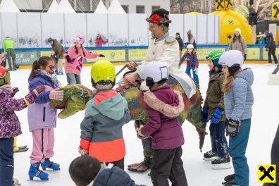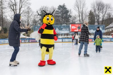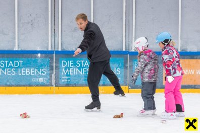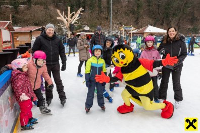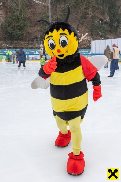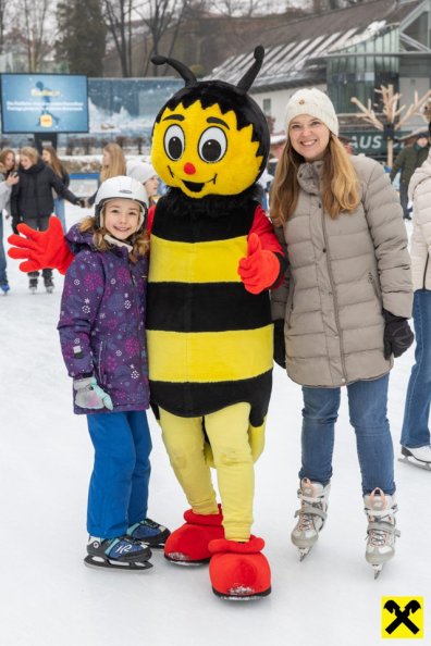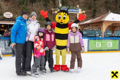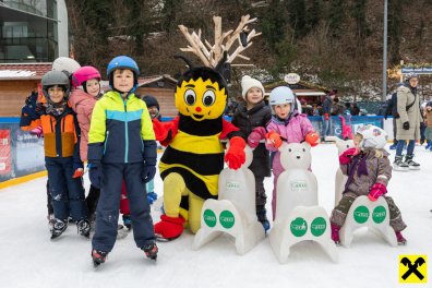 Im Mittelpunkt des Nachmittags stand Sumsi selbst, das beliebte Maskottchen der Raiffeisen-Familie. Mit spontanen Tanzschritten und vielen Fotomotiven sorgte Sumsi für strahlende Kinderaugen und setzte den Ton für einen stimmungsvollen Nachmittag auf dem glitzernden Eis.