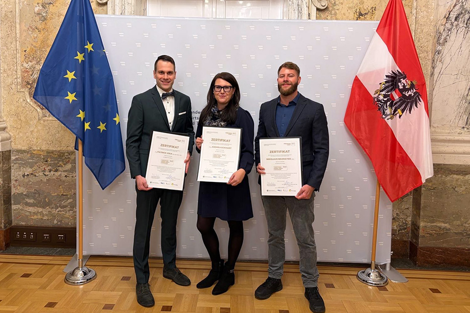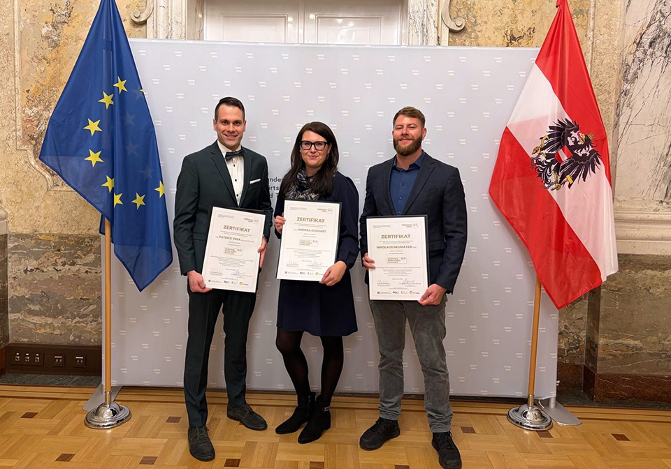 Unter den aktuellen Absolvent:innen befinden sich mit Andrea Eckhart, Nikolaus Neumayer und Patrick Volk auch drei Mitarbeiter:innen des Raiffeisenverbandes Steiermark. Mit dem erfolgreichen Abschluss erweitern sie ihre Expertise insbesondere im Bereich der Nachhaltigkeitsprüfung und tragen damit zur Weiterentwicklung der Prüfungsqualität innerhalb des Revisionsverbandes bei.
