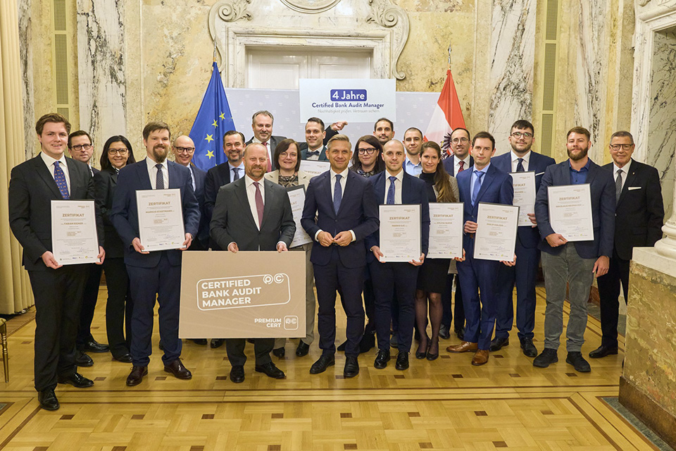 14 neuen Certified Bank Audit Managern wurde kürzlich im Wirtschaftsministerium in Wien ihr Abschlusszeugnis überreicht. Entsprechend neuer gesetzlicher Vorgaben fokussiert die Ausbildung noch stärker auf integrierte Nachhaltigkeitsberichterstattung. Mit dem im Jänner 2026 beschlossenen Nachhaltigkeitsberichtsgesetz – kurz NaBeG – soll auch für Banken ein Meilenstein für Qualität, Vergleichbarkeit und Rechtssicherheit erreicht werden. Für den Finanzstandort Österreich soll dies mehr Verlässlichkeit bringen – sowohl für Institute als auch für Aufsicht, Investoren und Öffentlichkeit.