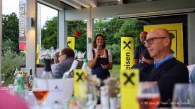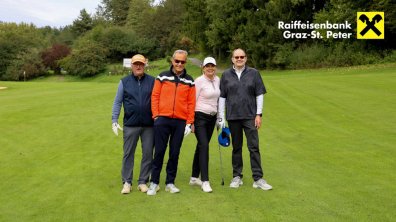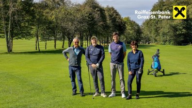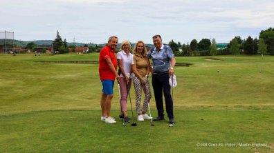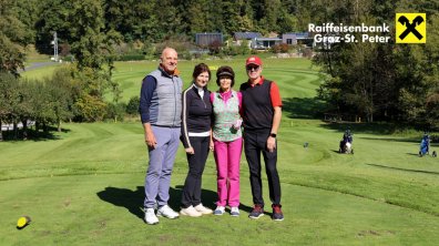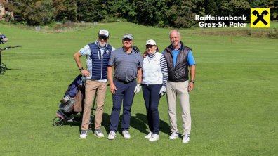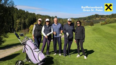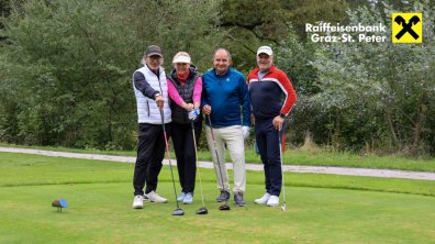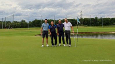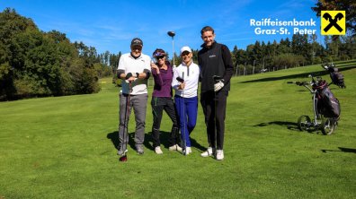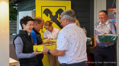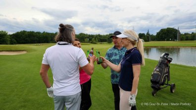 Abschlagen, genießen und gemeinsam ausklingen lassen: So lautete das Motto beim diesjährigen Afterwork-Golfturnier der Raiffeisenbank Graz-St. Peter Ende Mai im Golfclub Grazer Murauen am südlichen Stadtrand von Graz in Gössendorf. 30 Kund:innen gingen in der beliebten Texas-Scramble-Form bei perfekten Bedingugen an den Start. Nach einem sportlichen Nachmittag verwöhnte Gastgeberin Eva Petz auf der Clubterrasse mit köstlichen steirischen Tapas.