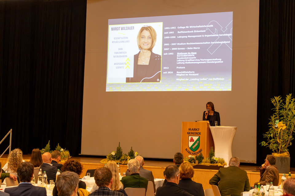 Unter dem Motto „Weitblick 360° – Karriere, Sicherheit und Märkte neu denken“ stand die zweite Funktionärsplattform des Raiffeisenverbandes Steiermark in diesem Jahr, die wieder eine große Anzahl an Eigentümervertreter:innen steirischer Raiffeisenbanken nach Niklasdorf zog.