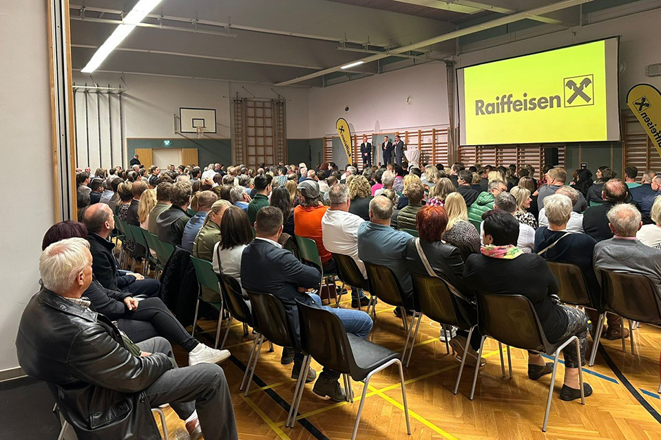 Ein Abend, der ganz im Zeichen von Austausch und Perspektiven stand, war das traditionelle Oktobergespräch der Raiffeisenbank Gamlitz. Trotz laufender Modernisierungsarbeiten am Standort setzten die Verantwortlichen bewusst auf den persönlichen Kontakt und so wurde kurzerhand die Mehrzweckhalle Gamlitz zum Treffpunkt für anregende Gespräche und inspirierende Impulse für rund 500 interessierte Gäste.