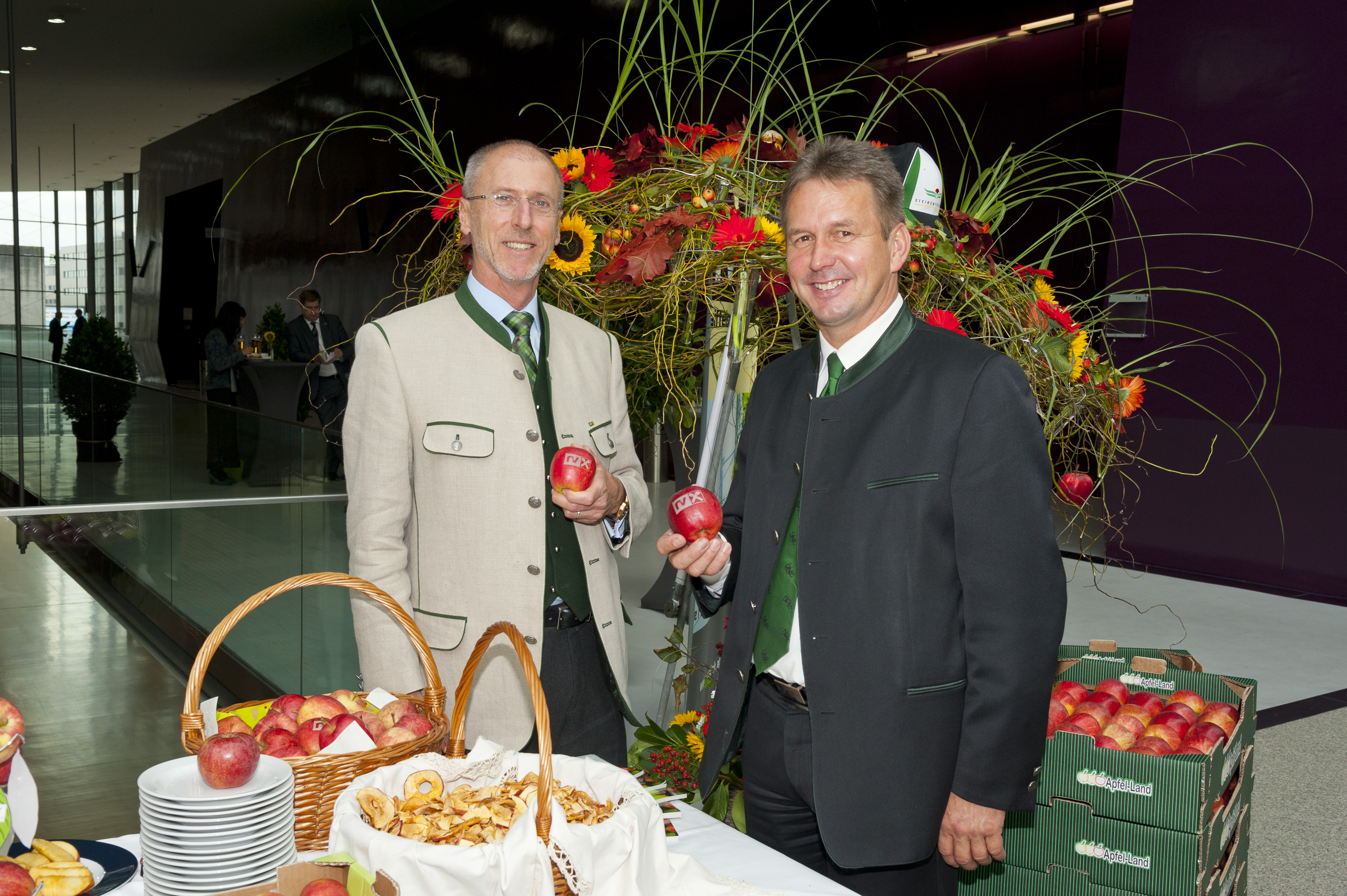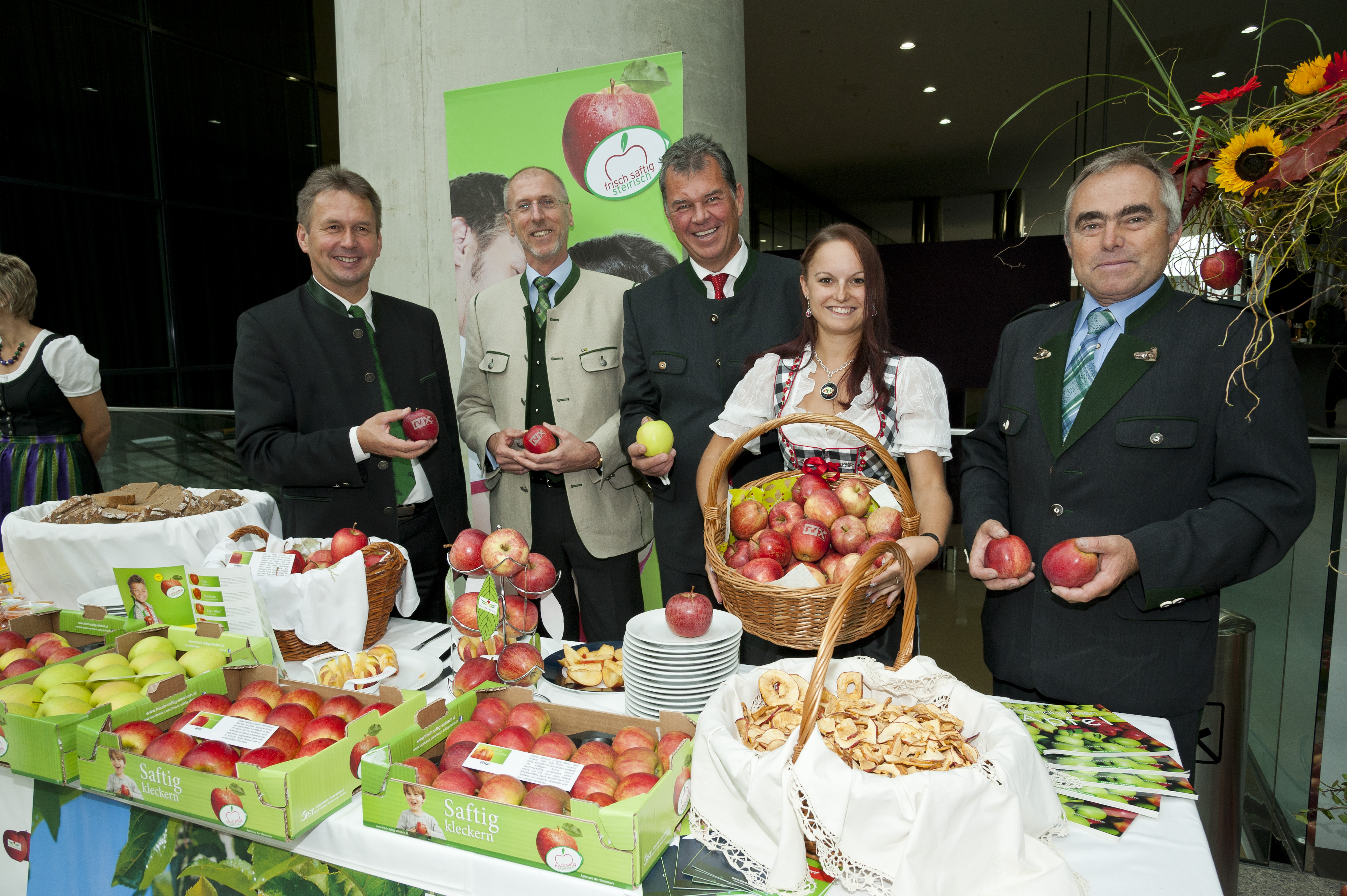 Verbandsobmann Franz Titschenbacher (li.) und Verbandsdirektor Heinrich Herunter (2. v. li.) mit Vertretern der Steirerobst