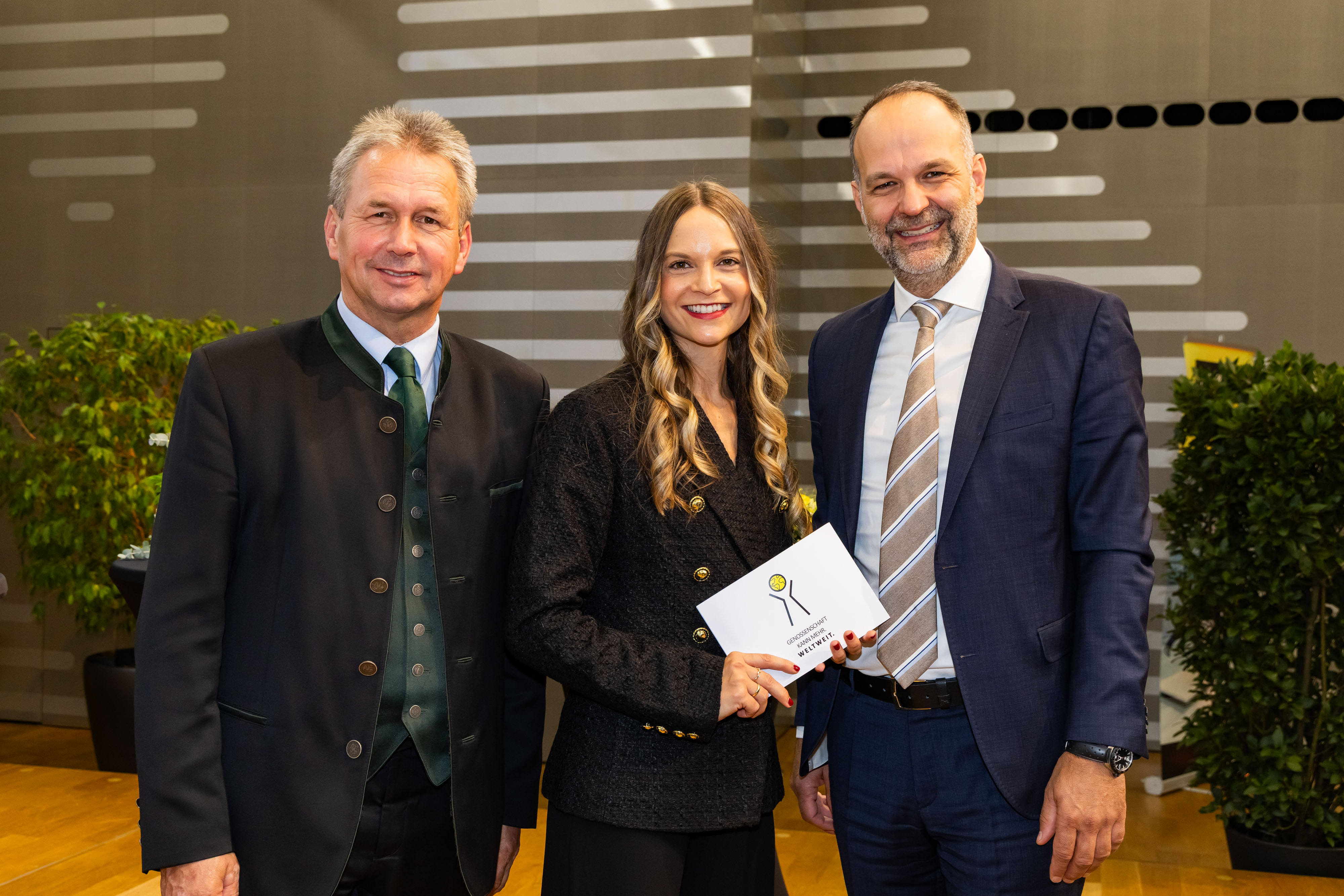 Verbandsobmann Franz Titschenbacher, Moderatorin Verena Kicker, Verbandsdirektor Peter Weissl (v. li.)
